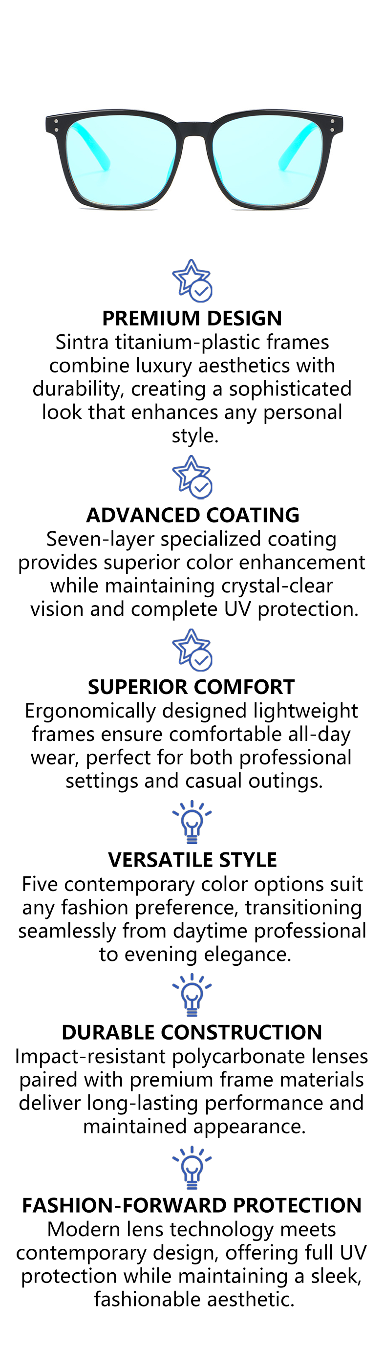 Sintra Color Blind Glasses utilize specialized multi-layer coating technology to enhance color discrimination. The advanced filter system helps separate and clarify colors, making everyday tasks like choosing clothes or reading charts significantly easier.